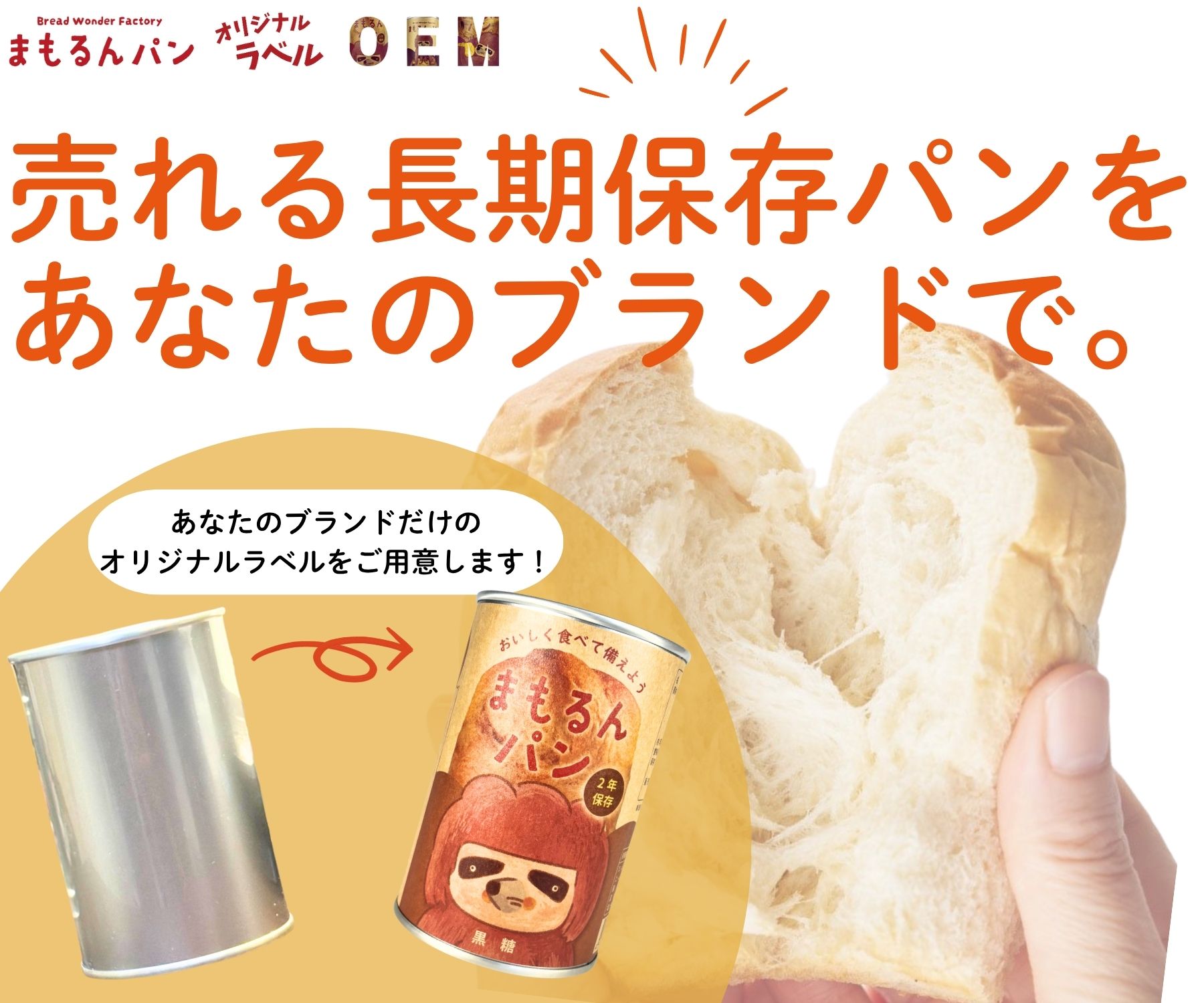 缶詰に使用しているパンは、長期保存パンブランド「まもるんパン」が開発・製造しています。